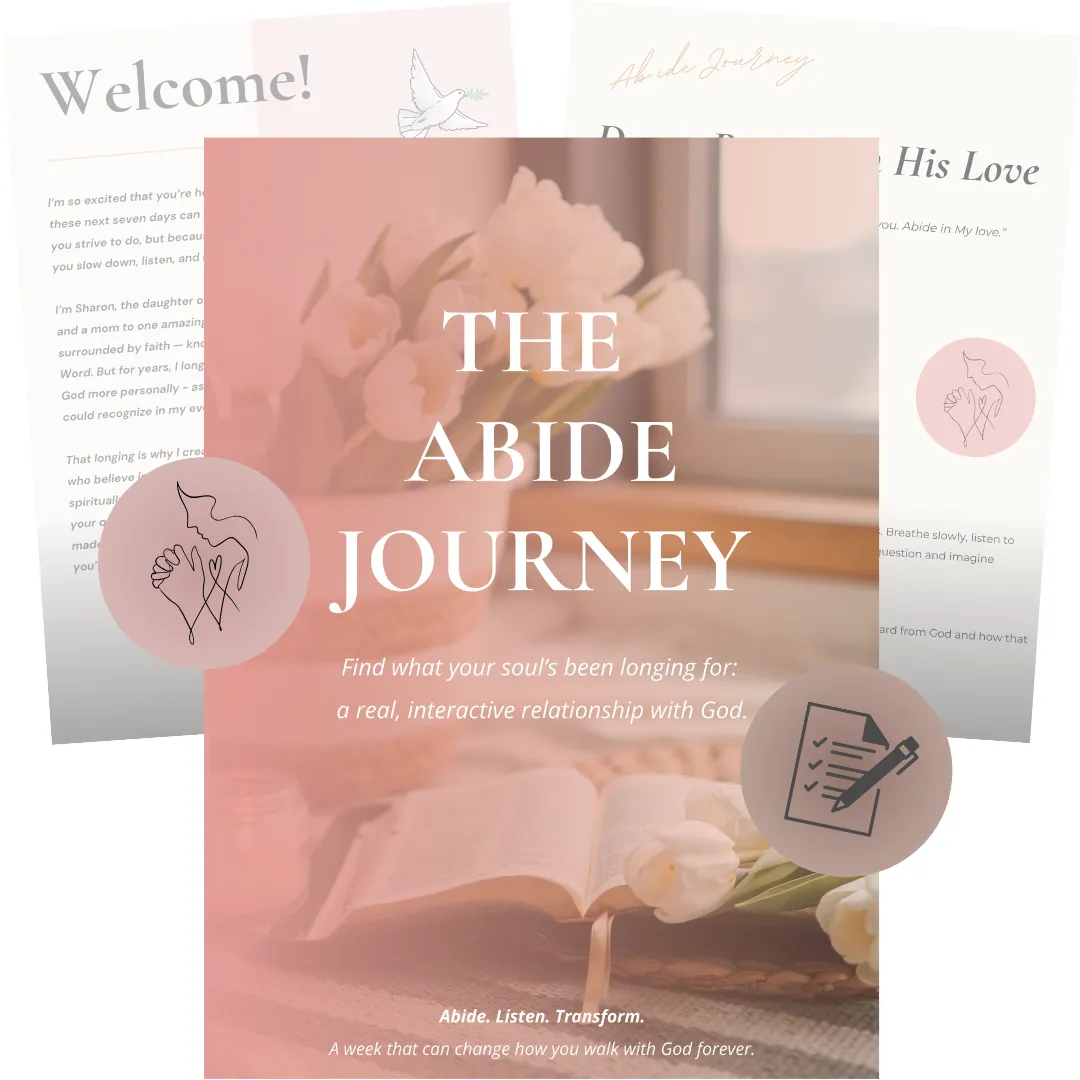 If you’ve been longing for a deeper connection with God but don’t know where to start, the Abide Journey gently leads you through simple, daily steps that help you slow down, listen, and connect with His presence in real and personal ways.
